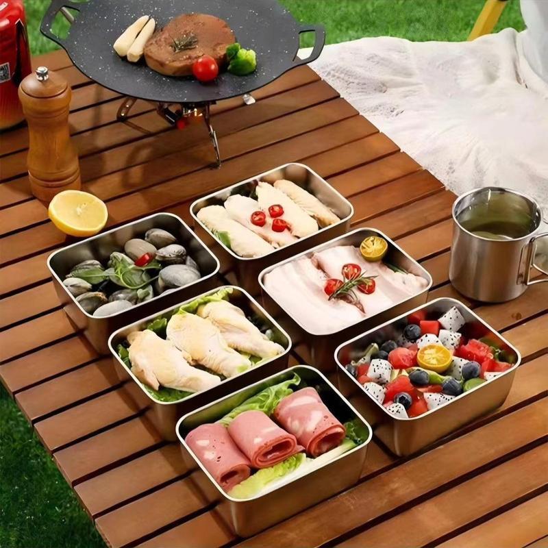 ● Durable Lunch Box with Lid: This stainless steel food storage box is designed for durability. It comes with a lid, ensuring your food stays fresh. Perfect for home kitchen use. 🍽️